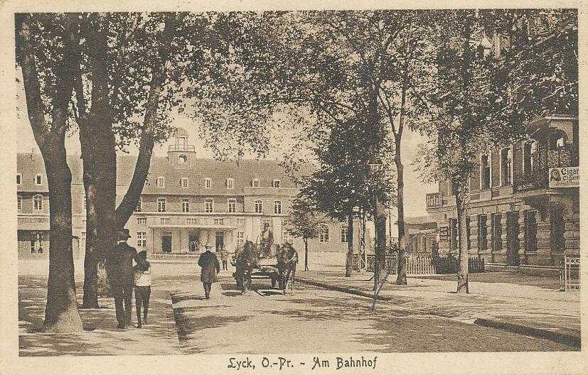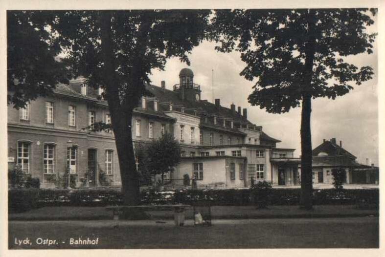 Dworzec w Lyck (Ełk) w trakcie panowania III Rzeszy. Gdyby komuś udało się rozpoznać markę samochodu stojącego przed dworcem (tego widocznego z boku), można było by doprecyzować datę zrobienia zdjęcia. Oceniając po wyglądzie karoserii, przypuszczam, że są to późne lata 30-te, lub nawet 40-te.