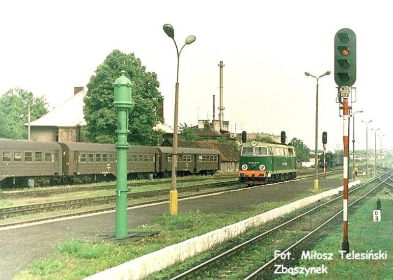 Widok na ełckie perony od strony południowej (wjazdy z Białegostoku i Pisza) u zmierzchu epoki pary, jeszcze przed elektryfikacją.