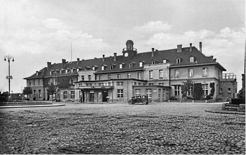 Dworzec w Ełku od strony miasta, na dawnej pocztowce.
