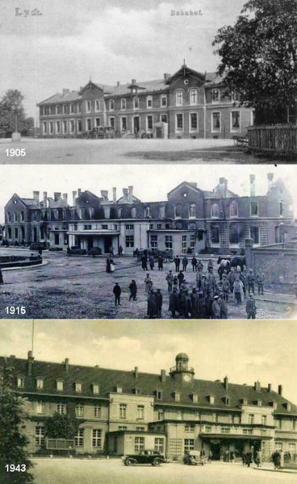 Zmiany w wyglądzie dworca w Ełku na przestrzeni pierwszej połowy XX wieku.