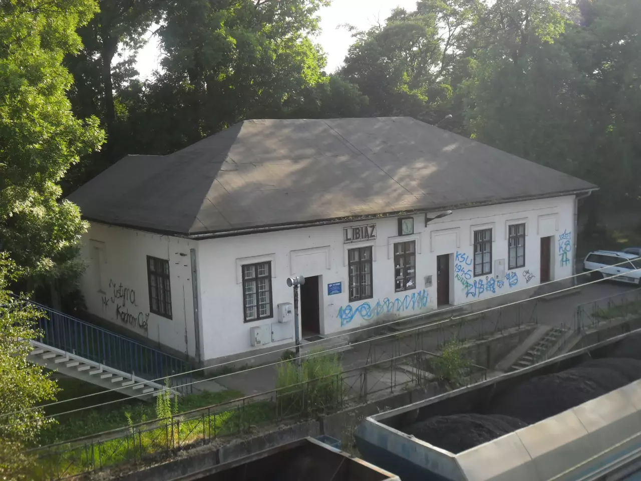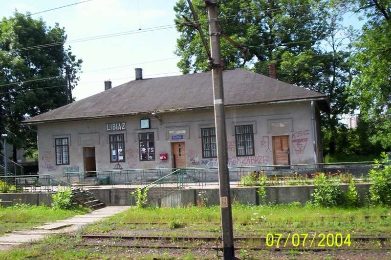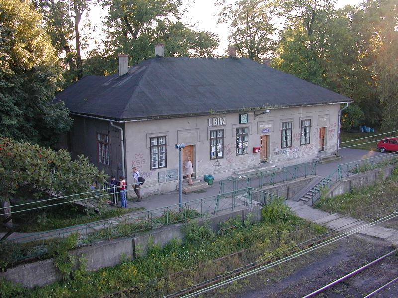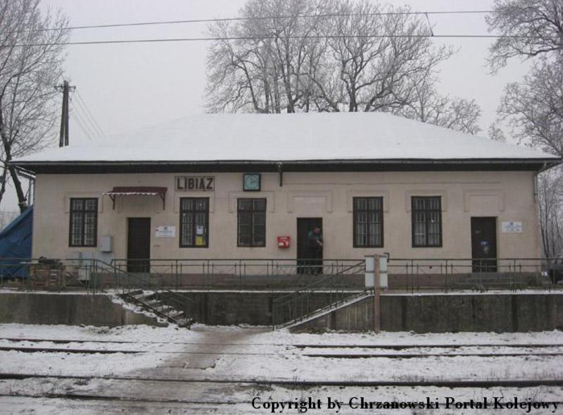 Budynek dworca Libiąż - widok od strony miasta, w lewo Oświęcim, w prawo Chrzanów.