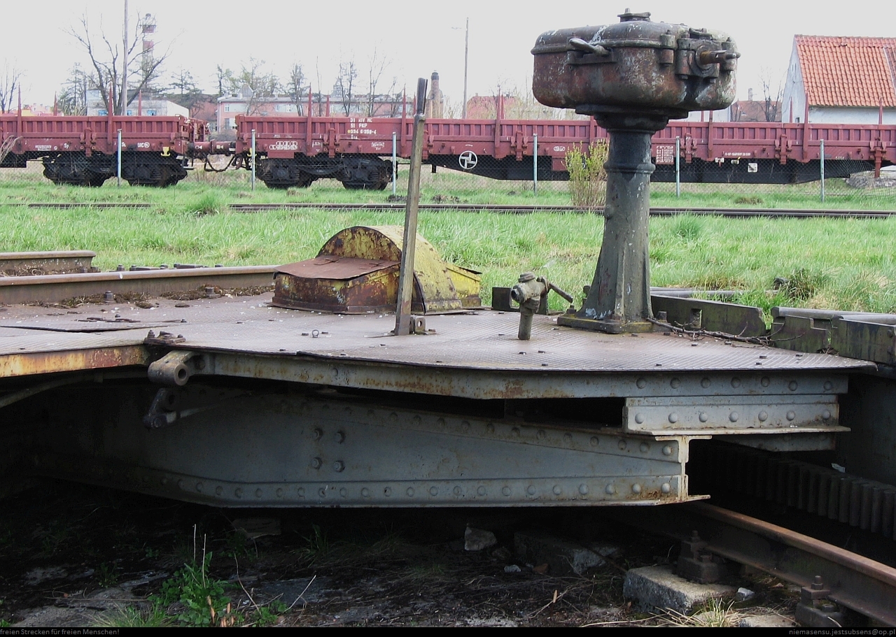 Mała (16-metrowa) obrotnica zrównoważona z czasów kolei pruskich. Ręczny mechanizm korbowy, blachownicowe przęsło, poniżej tor obwodowy i wieniec zębaty.