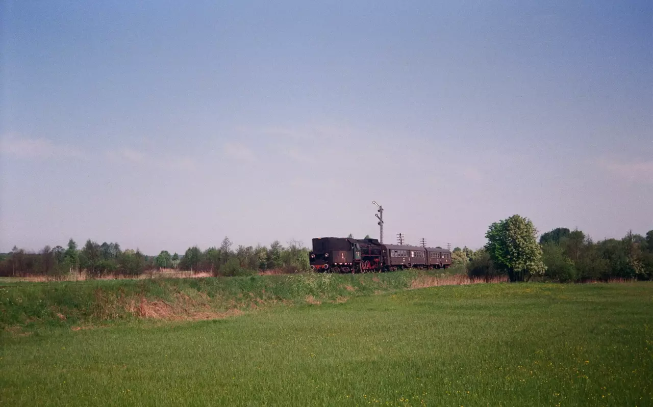 Stacja Orzysz - most na rzece Orzysza, pociąg M 9723 relacji Mikołajki - Ełk, prowadzony parowozem Ol49-11 (MD Ełk) opuszcza stację Orzysz, w lewo - kierunek Ełk, w prawo - kierunek Biskupiec Reszelski (Czerwonka).