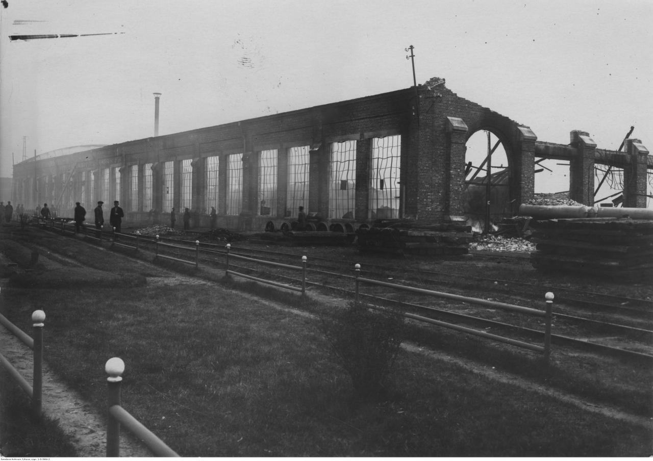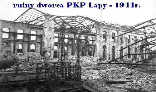 Hala wagonowni zburzona w sierpniu 1944 roku. Zdjęcie wykonane w 1944 roku. Autor nieznany. Fotografia z książki "Z przeszłości Łap i okolic", 2001 rok autorstwa Mariana Olechnowicza.