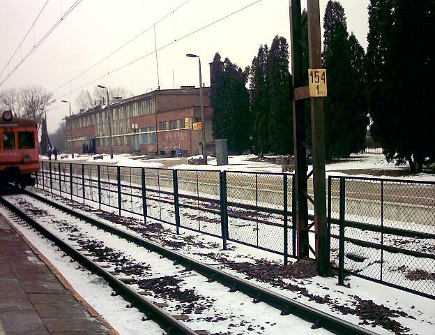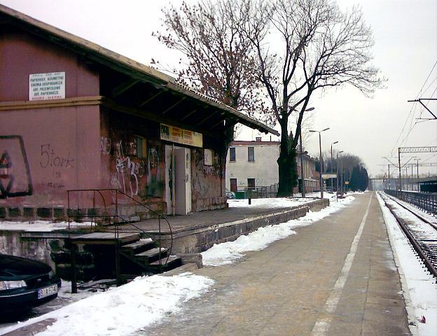 Budynek dworca. Widziany z peronu 1. Na peronie tym zatrzymują się pociągi w kierunku Małkini, ale podmiejskie, zaś na peronie 2 pospieszne i powrotne do Białegostoku. Widok w kierunku południowo-zachodnim, od strony wjazdu z Białegostoku.