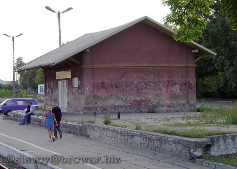 Dawny magazynek, posiada do dziś rampę z dwóch stron. Obecnie przerobiony na sklep chemiczny czy coś takiego. Stan nie najlepszy… W tle budynek dworca. Widok w kierunku północno-wschodnim, od strony wjazdów z Małkini/Warszawy i Czerwonego Boru/Ostrołęki.