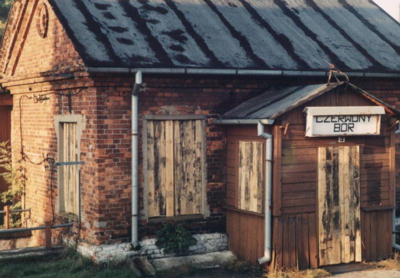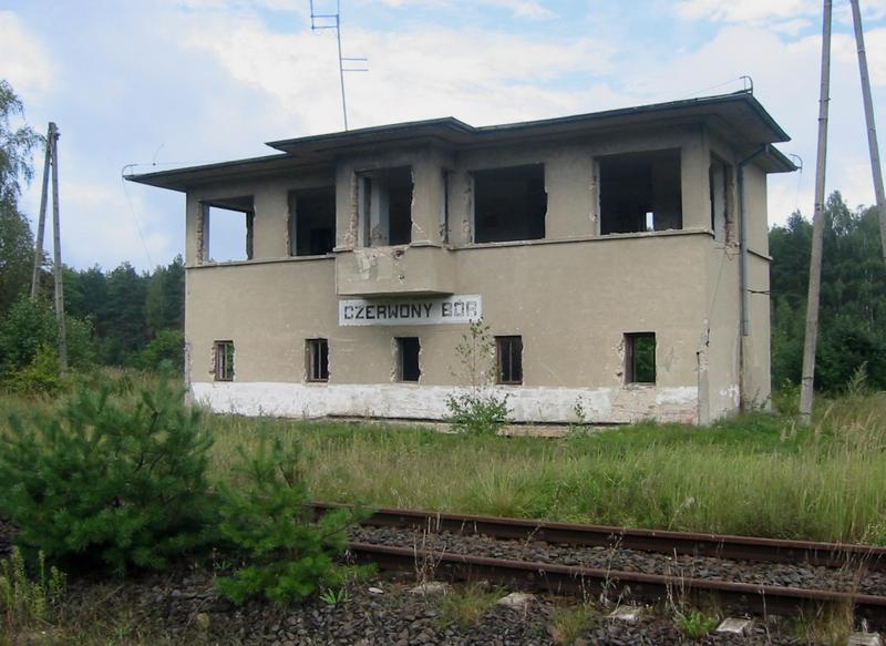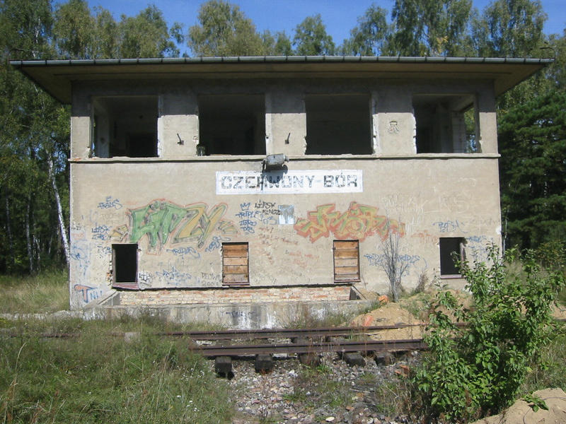 Nastawnia CB-2… oczywiście była nastawnia CB-2. Uważny obserwator przeglądający galerię zdjęć bez wysiłku zauważy zachodzące zmiany w wyglądzie budynków na stacji Czerwony Bór i stale postępującą ich dewastację. Ruch pociągów na tej linii zawieszono w 2000 roku, wystarczyło 5 lat na nieodwracalne zmiany…