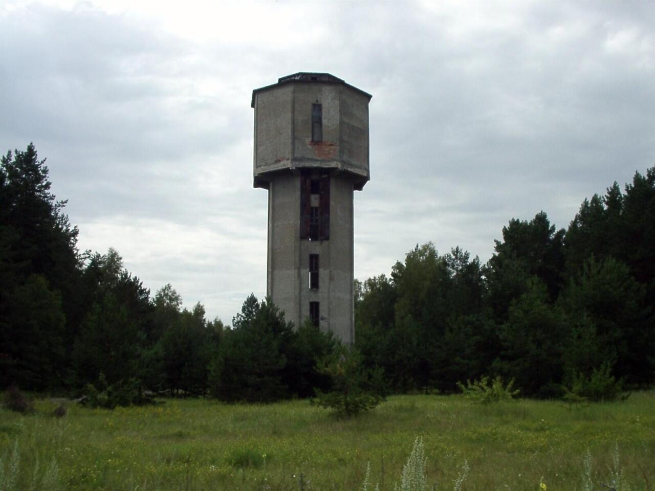 Czerwony Bór. Widok na wieżę wodną od strony dworca.