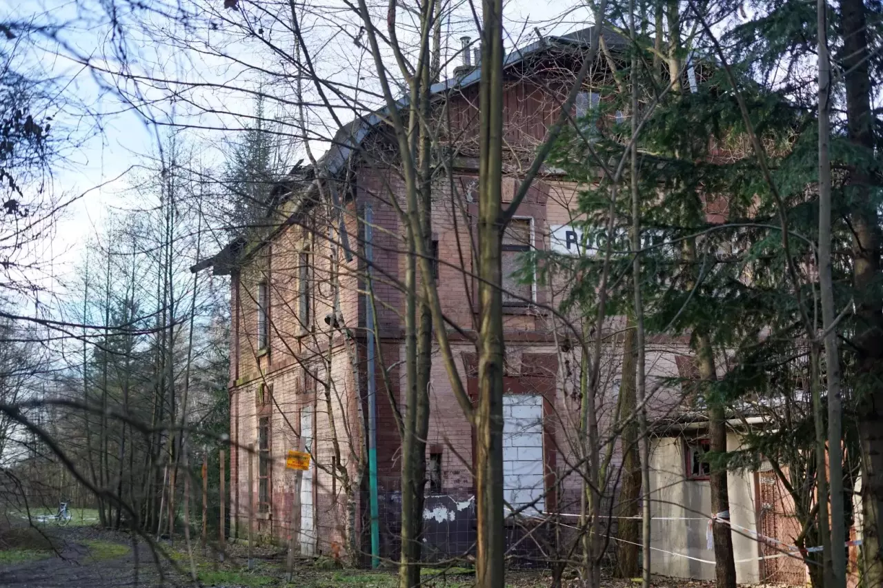 | budynki dworcowe: | Budynek ogrodzony siatką oraz tabliczkami informującymi o zakazie wstępu. Dach oraz stropy w większości zniszczone. | |