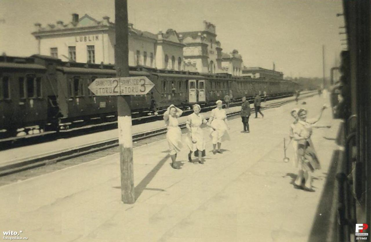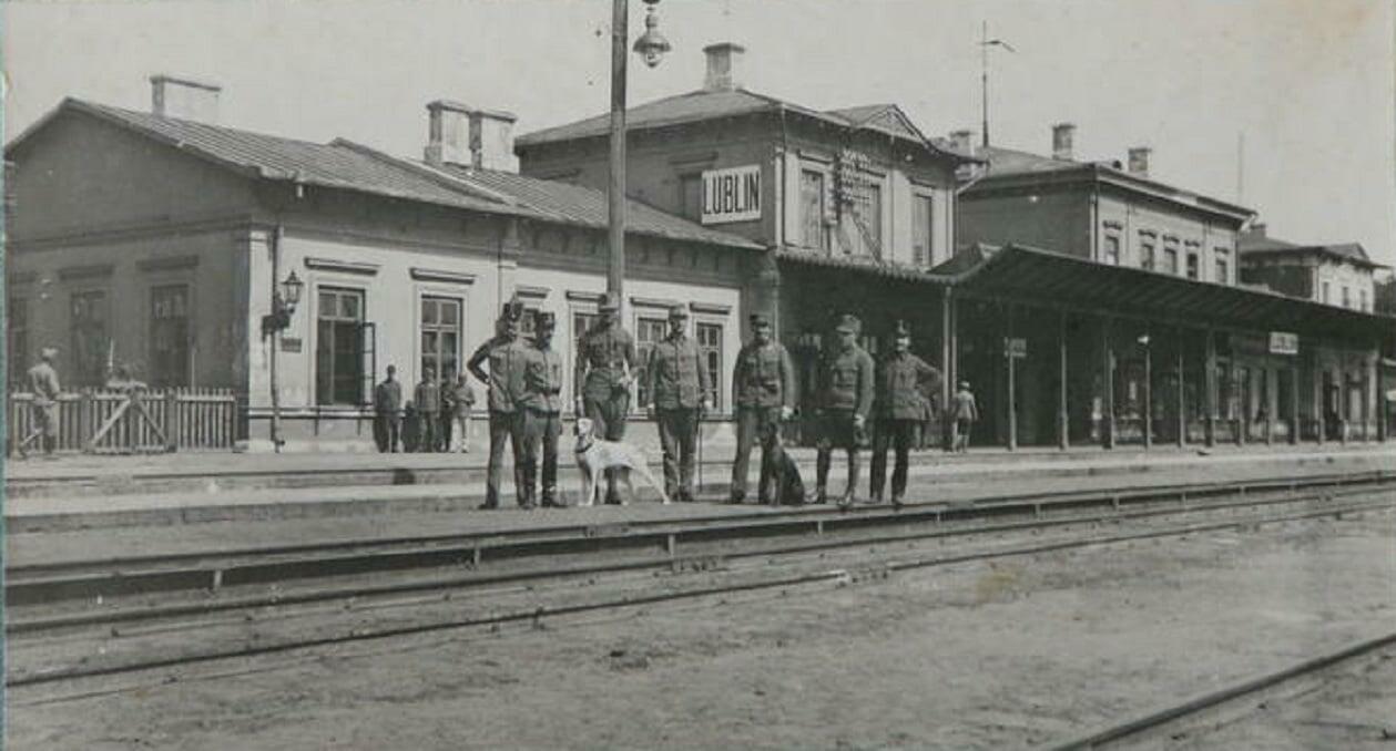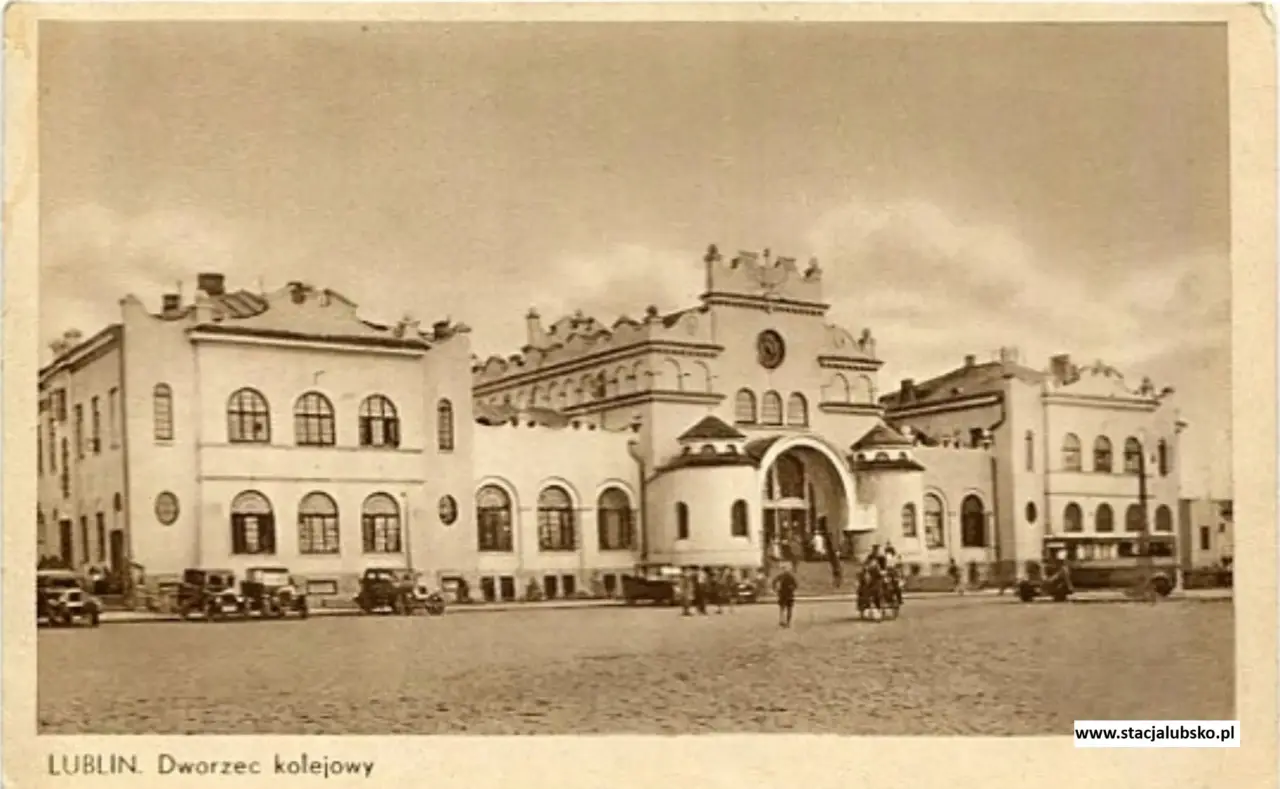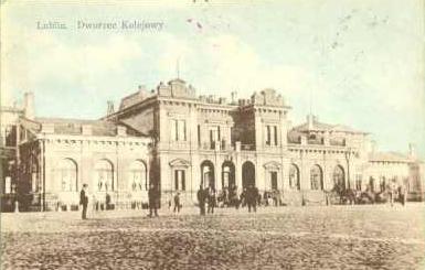 Widok na dworzec w Lublinie od strony miasta. Czasy przedwojenne, lata 20-30 XX w.