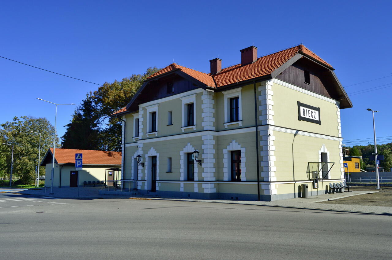 Opis ogólny: Ze stacji odchodzi bocznica do miejscowego tartaku, obecnie nieużywana. Budynek stacyjny został odnowiony w 2003/2004r. (info: Tomasz Machowski, 2005-03-13) Opis infrastruktury: Kładka nad torami nie jest w najlepszym stanie. Cała stacja to 3 tory przelotowe (dwa przy skrajnych peronach i jeden pośrodku) plus jeden tor przy małej rampie przeładunkowej. (info: Karol Romaniuk, 2006-05-05) Opis budynków: Ładny piętrowy budynek dworca i parterowa, otynkowana na szaro nastawnia przy wjeździe od strony Gorlic Zagórzan. (info: Karol Romaniuk, 2006-05-05) |