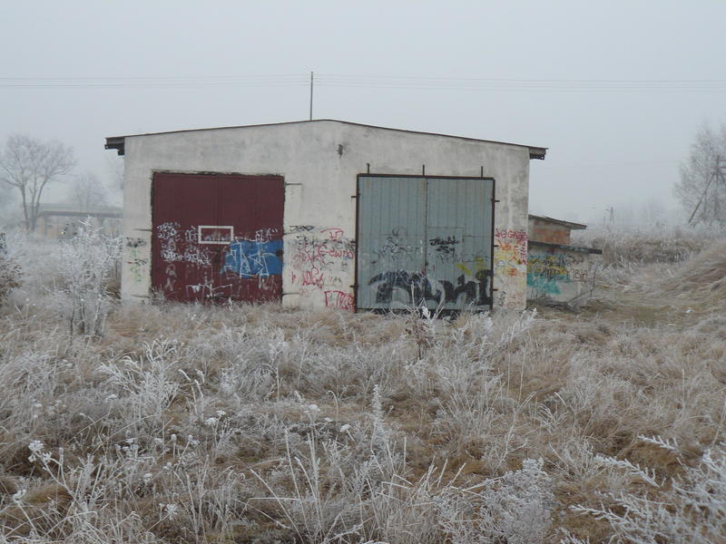 Nieczynny garaż drezyn (dawno już nic tu nie parkowało).
