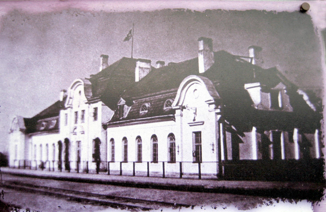 Budynek dworcowy w okresie międzywojennym. Zdjęcie pochodzi z wystawy w muzeum Kolejki Leśne.