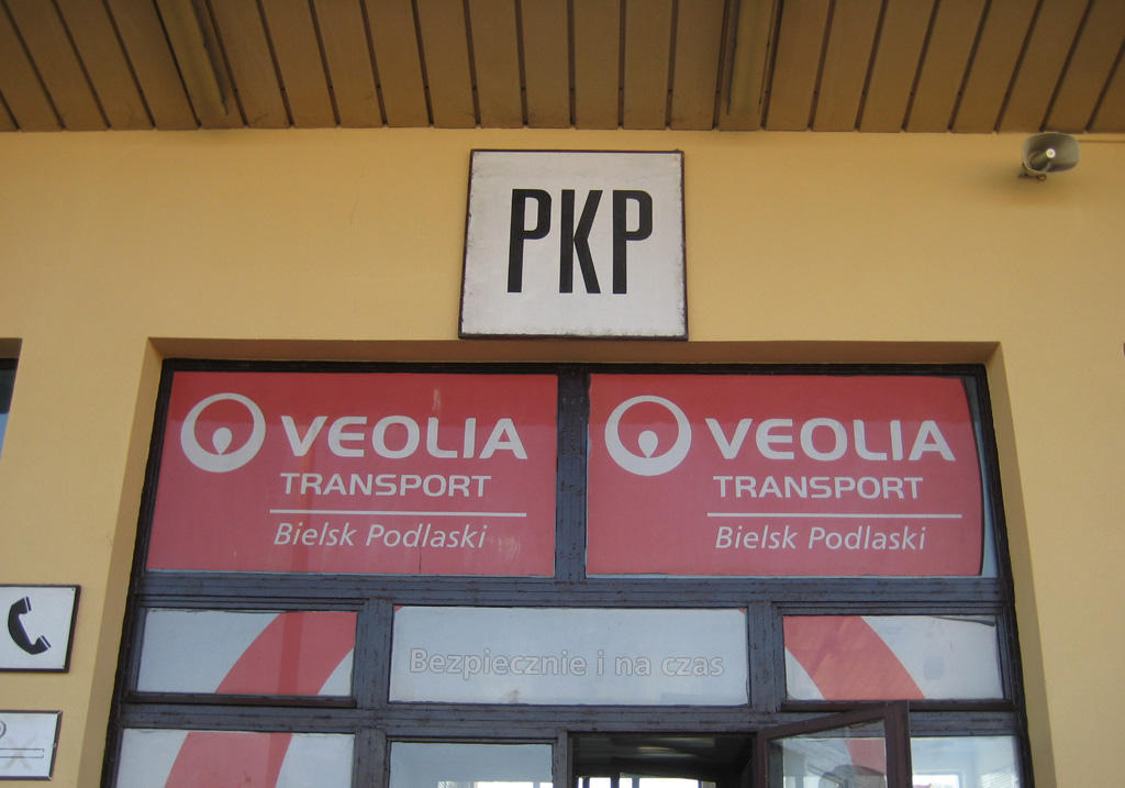 Stacja PKP Bielsk Podlaski. Część budynku dworcowego wykorzystuje firma VEOLIA Transport.