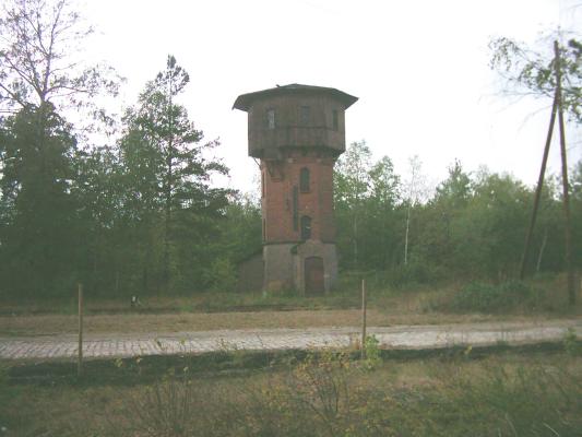 Nieczynny wjazd od strony Żagania. Z prawej wieża wodna.