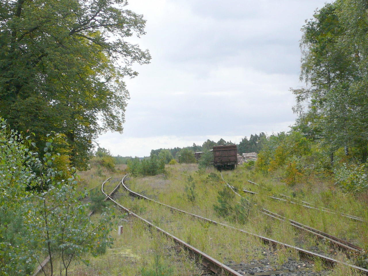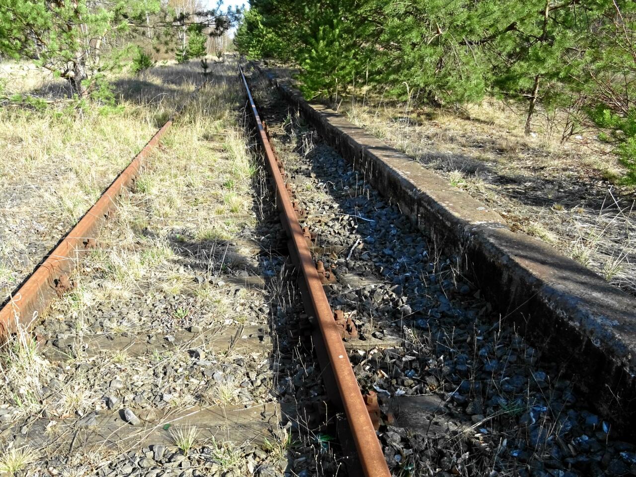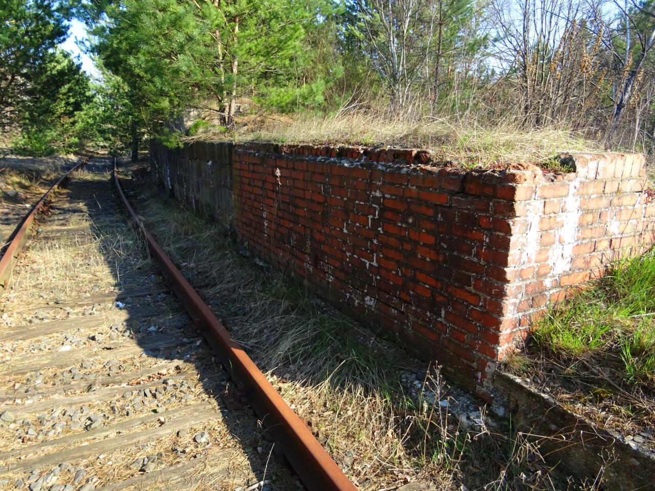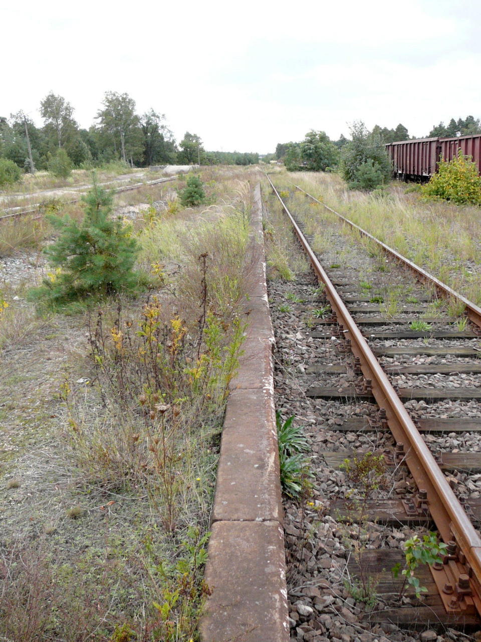 Po prawej zarośnięty peron.