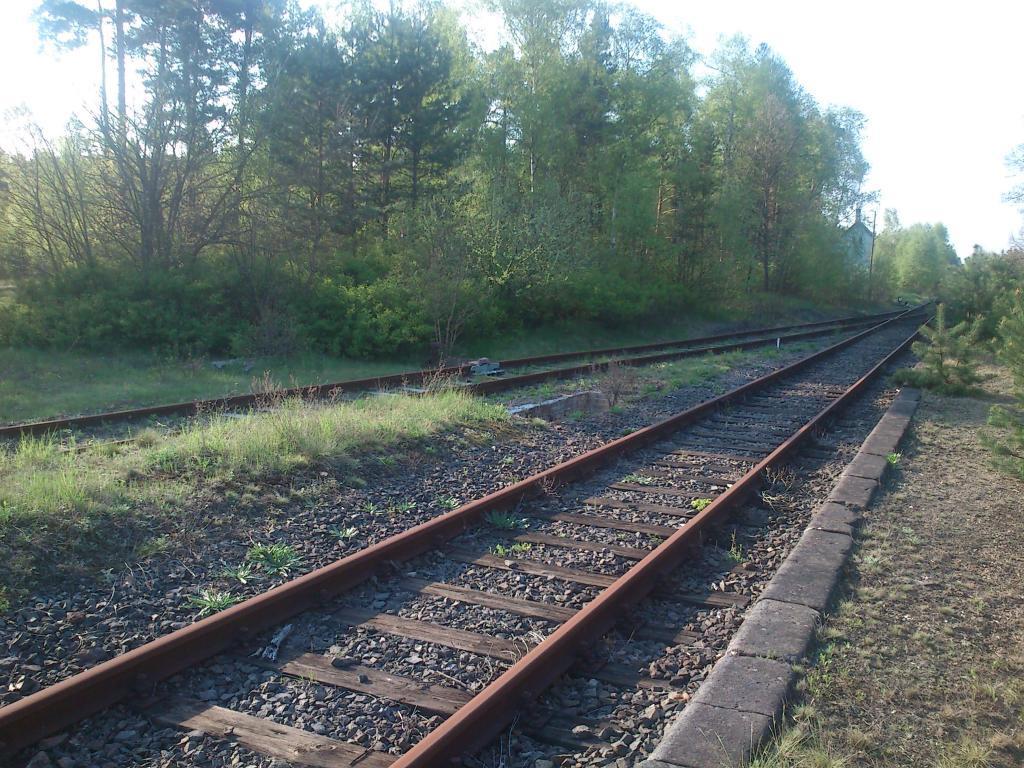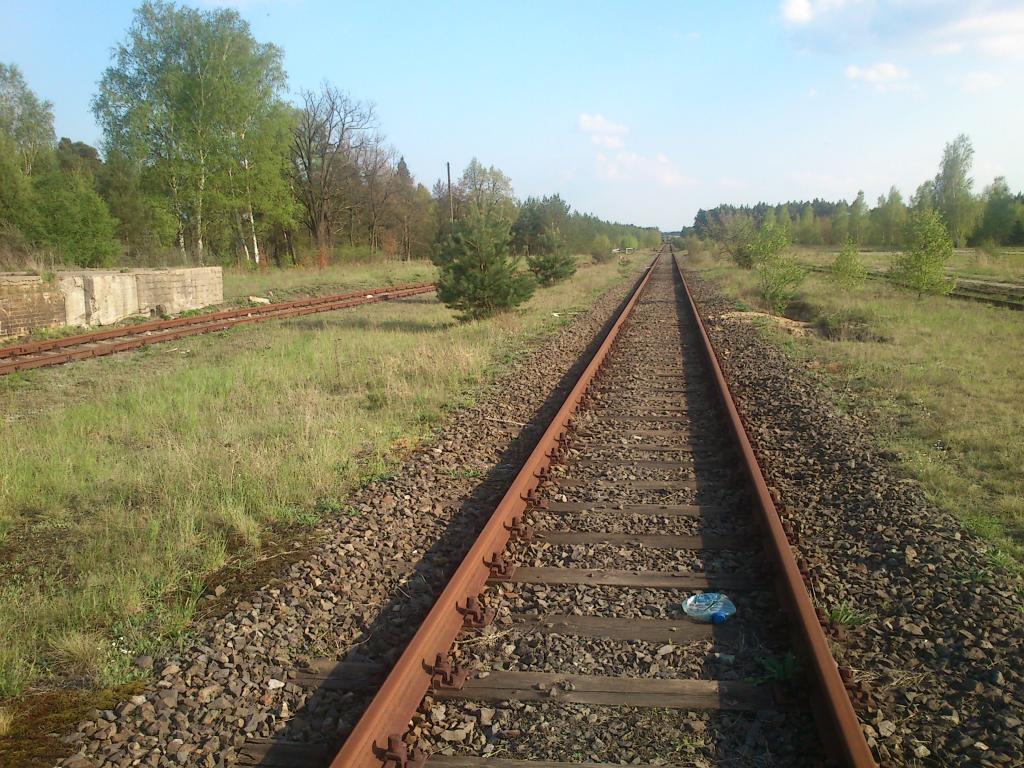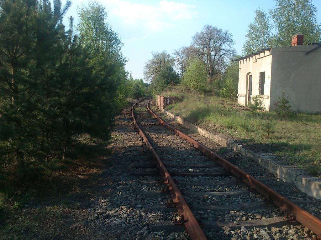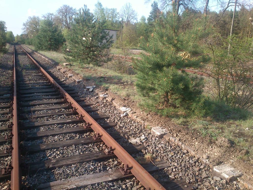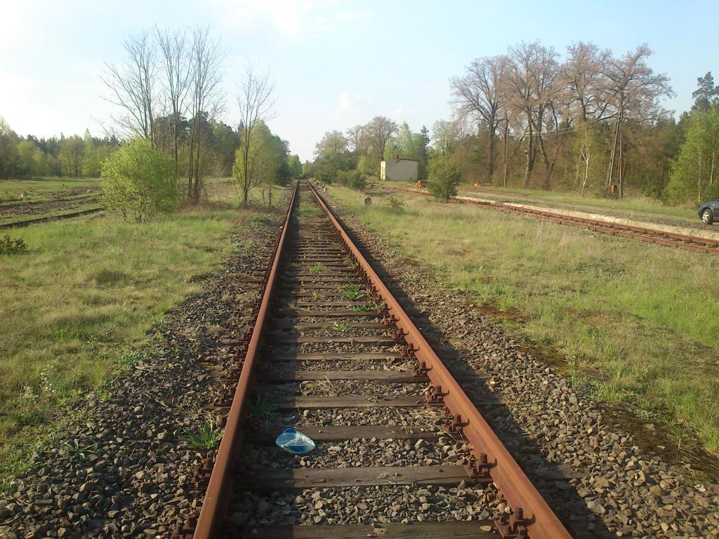Kierunek na Żagań, następny przystanek to Luboszów. Niestety, szlak jest miejscami rozkradziony i cały zarośnięty.