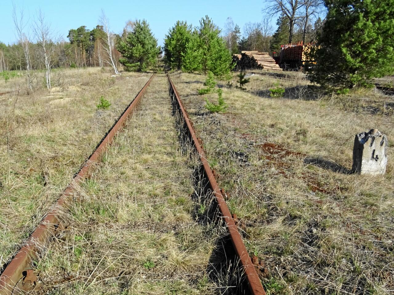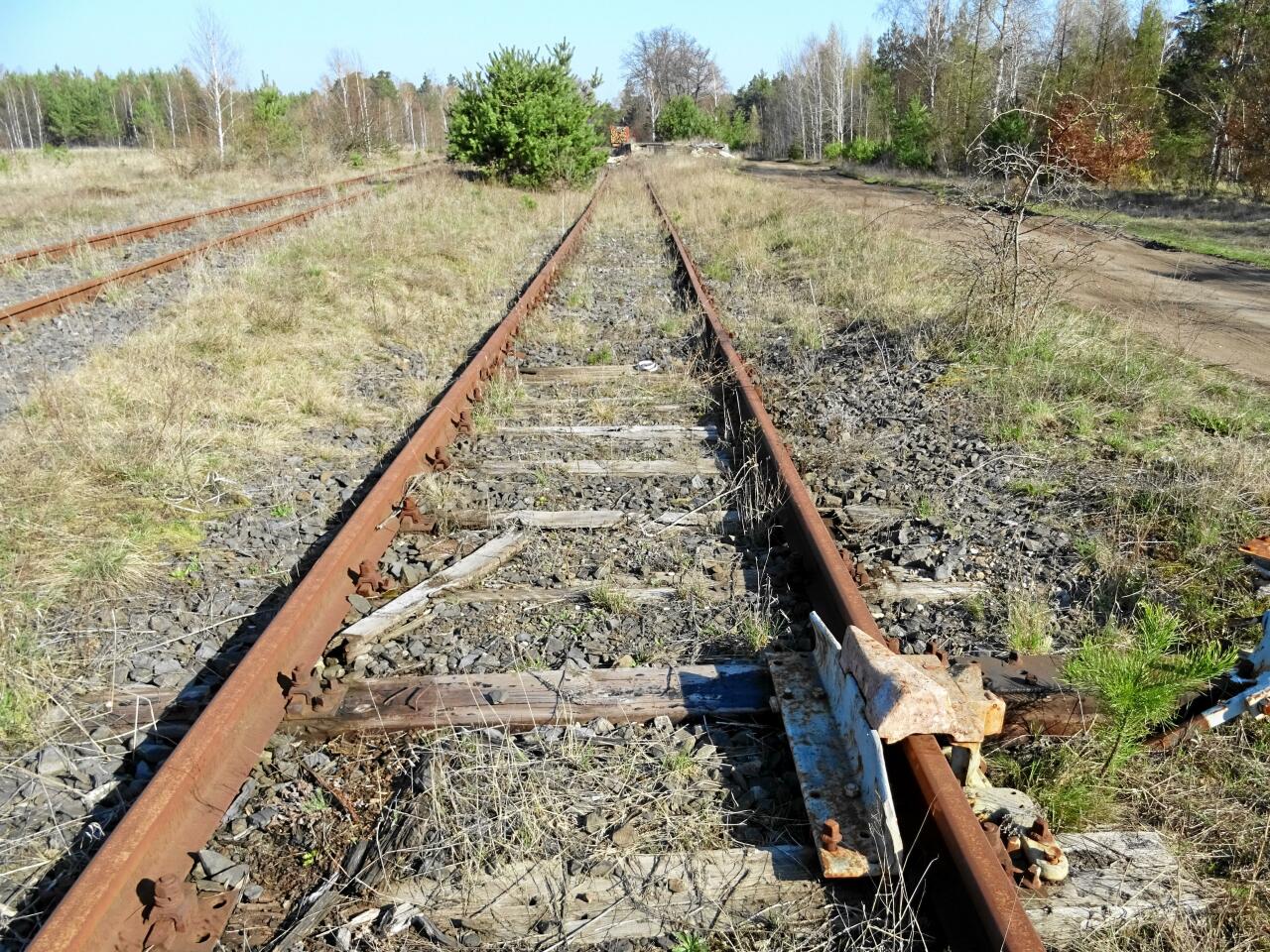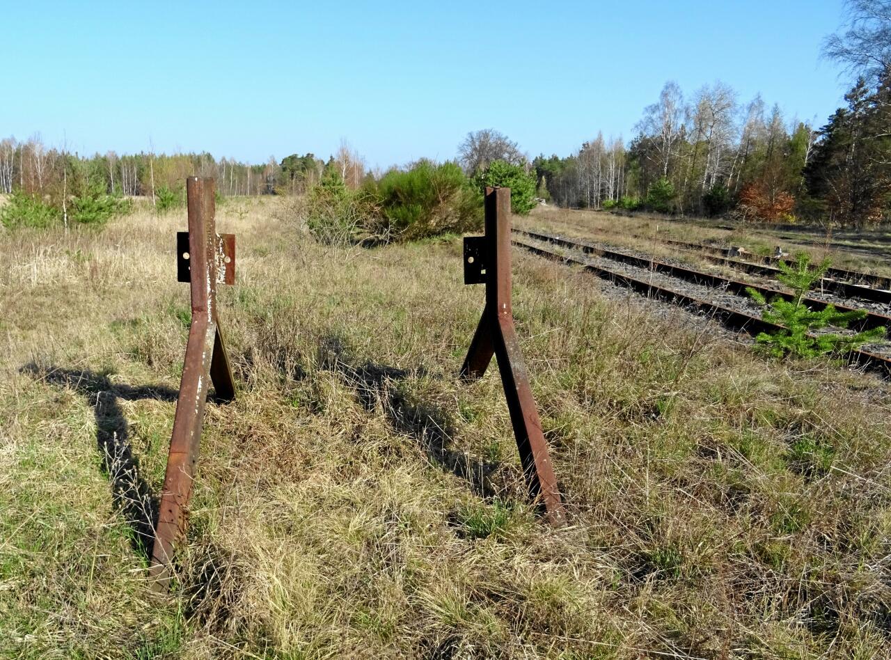 Kierunek na Żagań, następny przystanek to Luboszów. Niestety, szlak jest miejscami rozkradziony i cały zarośnięty.