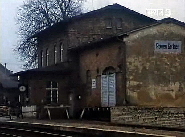 Kadr z serialu "Pogranicze w ogniu". Stacja Kaźmierz: http://motyw-kolejowy.blogspot.com/2015/07/pogranicze-w-ogniu-1988-1991.html pojawia się w II odcinku jako "Posen Gerber". Reżyserem filmu jest Andrzej Konic, a zdjęcia zrobił Antoni Wójtowicz.