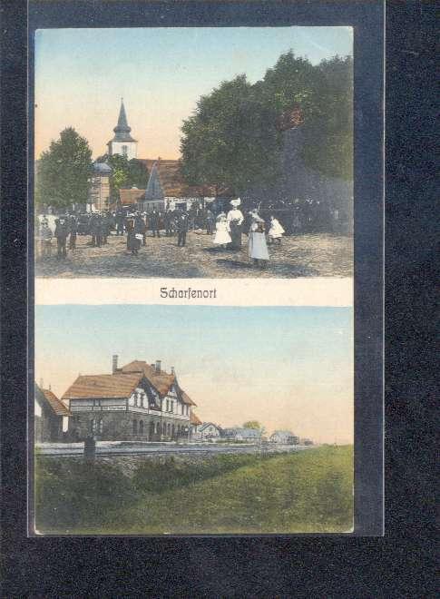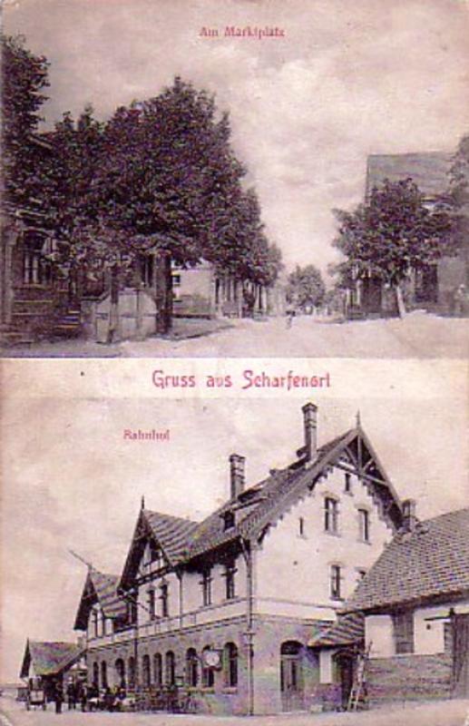 Stara pocztówka. W dolnym polu budynek dworca od strony peronów i wjazdu z Szamotuł.