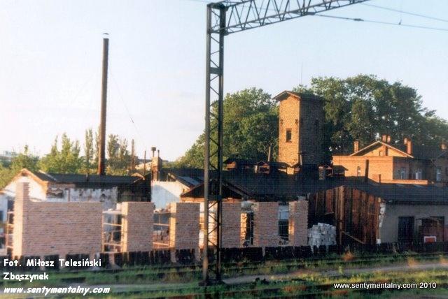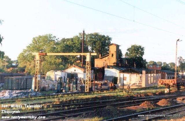 Kolejka Opalenicka w dniu 09.05.90. Wyburzone mury parowozowni pod budowę nowej hali.