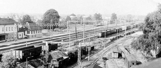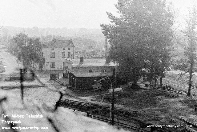 Opalenica Wąskotorowa. Widok z rozebranej wieży wodnej w dniu 07.08.1986 roku.