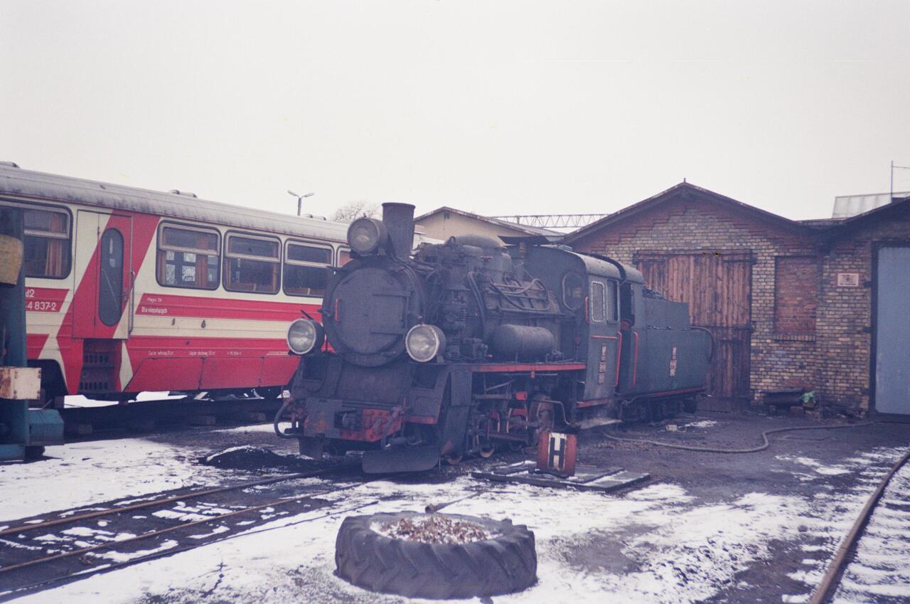 Stacja Opalenica Wąskotorowa - parowóz Px48-1902 zatrudniony w charakterze "grzejki", celem ogrzewania budynku lokomotywowni.