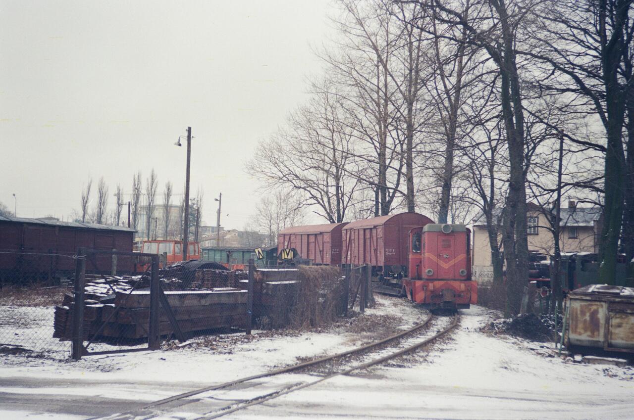 Opalenica Wąskotorowa w dniu 10.02.1987 roku. Teren za lokomotywownią.
