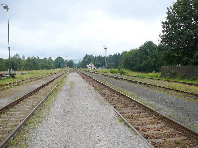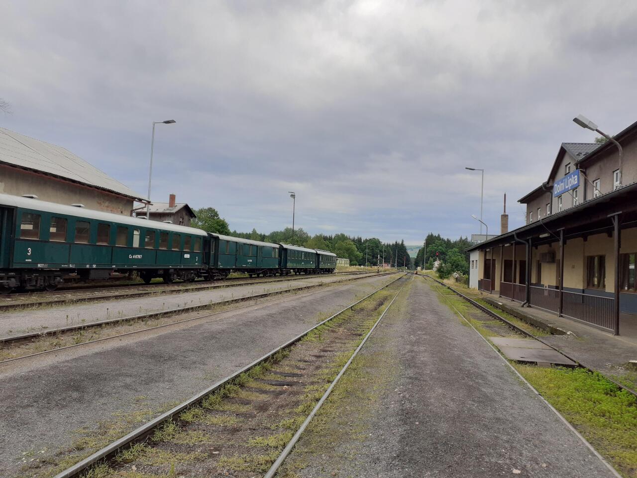 Widok na stację Dolní Lipka od strony wjazdu Lichkova. W tle nastawnia wykonawcza nr 2. Kierunek wschodni.
