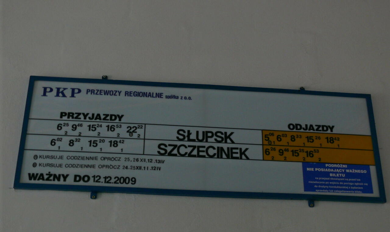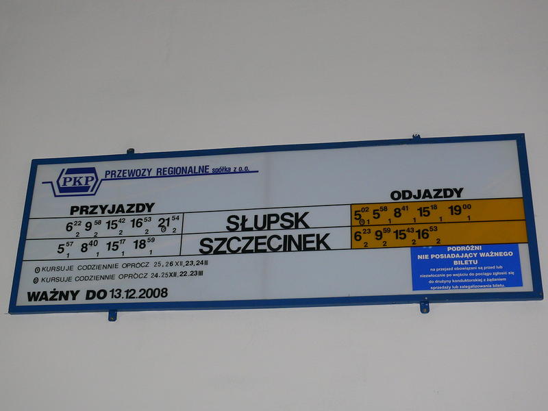 Rozkład jazdy 2008. Cieszy nas, że liczba pociągów kursujących na szlaku Słupsk Szczecinka, nieuległa zmianie.