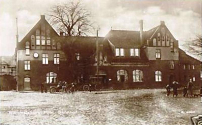 Stara pocztówka. Budynek dworca od strony miasta. Widok w kierunku zachodnim.