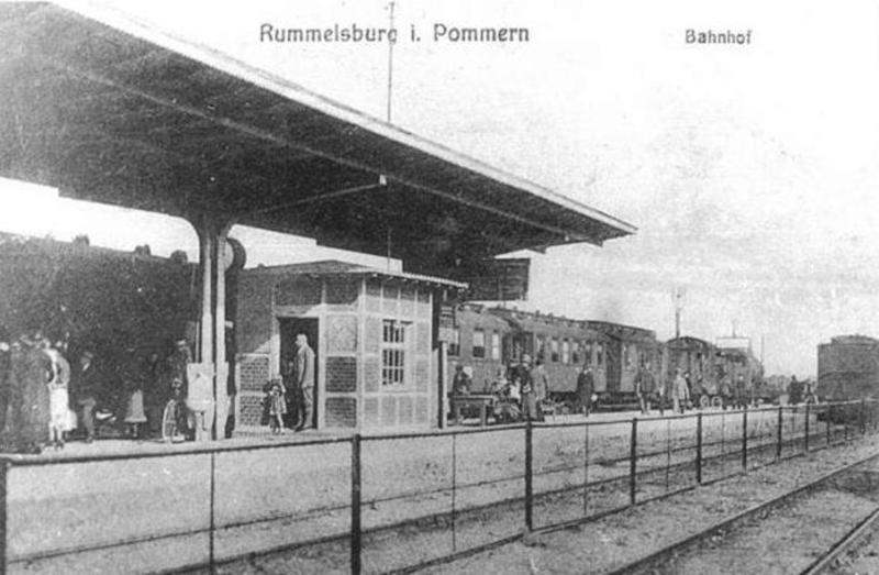 Peron 1 na starej pocztówce. Widok w kierunku północno-zachodnim: Korzybie/Słupsk, Bytów.