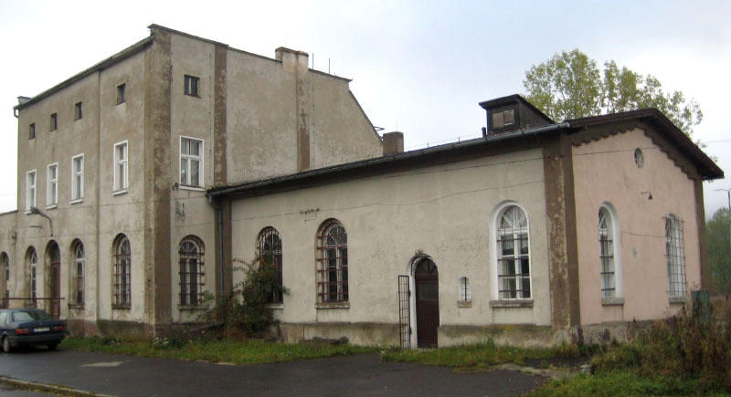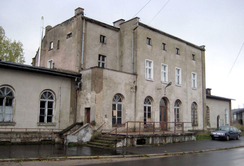 Dworzec kolejowy w bardzo dobrym stanie. Widok od strony ul. Dworcowej, w kierunku południowym.