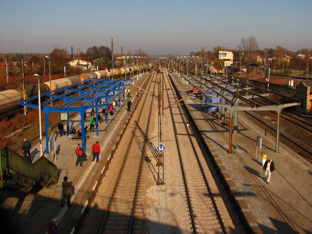 Stacja Łazy, widok w kierunku Katowic na perony.