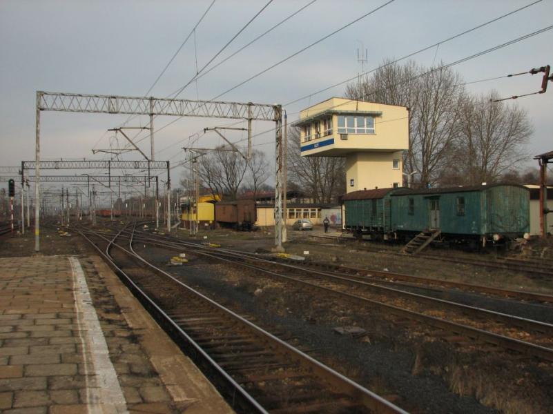 Nastawnia ŁB widziana od strony peronów. Po lewej wagon nastawnia;).