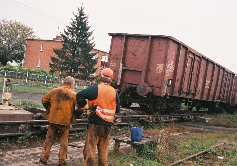 Kolejne ujecie. Wagon juz przesuniety na pierwszy transporter od rampy.Trzeba go jednak przesunac dalej ,az na pierwszy tzrnsporter za lokomotywa.