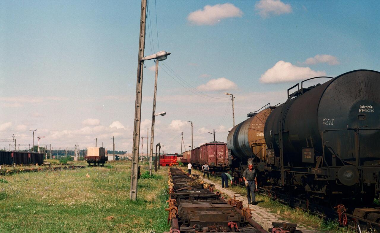 Stacja Opatówek Wąskotorowy - punkt przeładunkowy, tor 15 - zajęty próżnymi transporterami, tor 17 - praca przeładunkowa (zatrudniona lokomotywa Lxd2-339). Widok w kierunku stacji Żelazków.