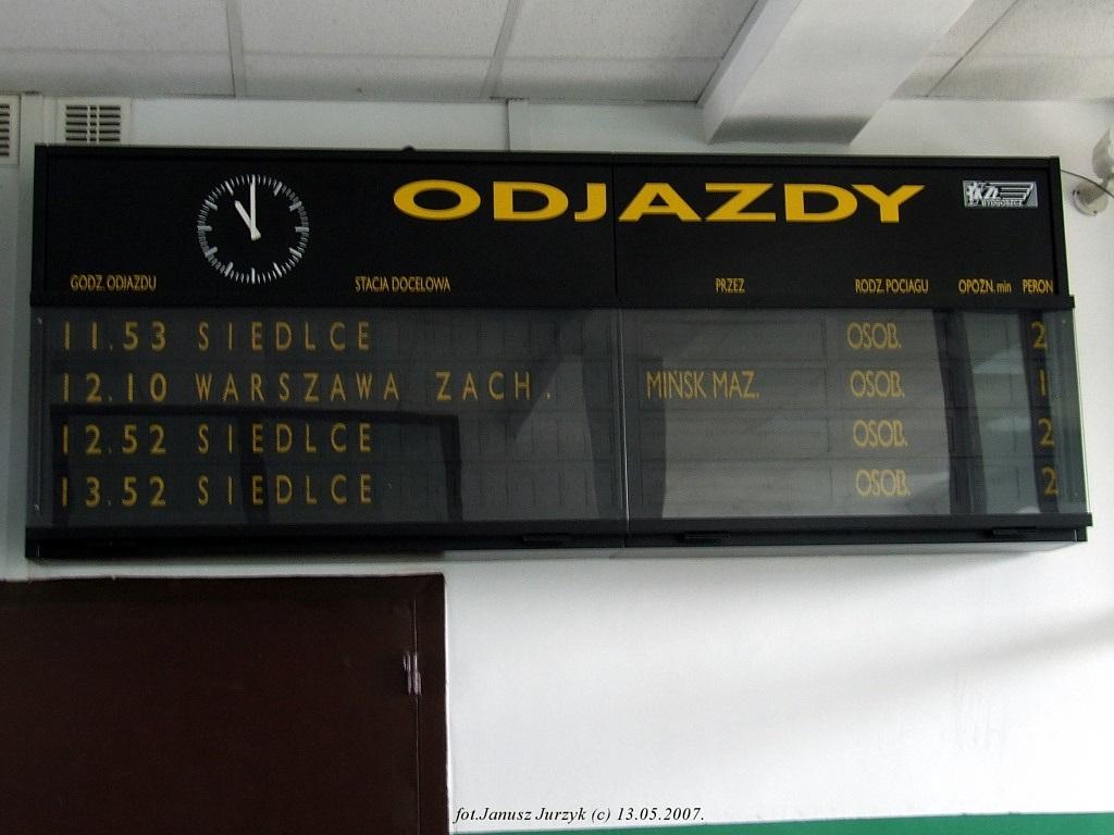 Tablica odjazdów pociągów na stacji w Mrozach.