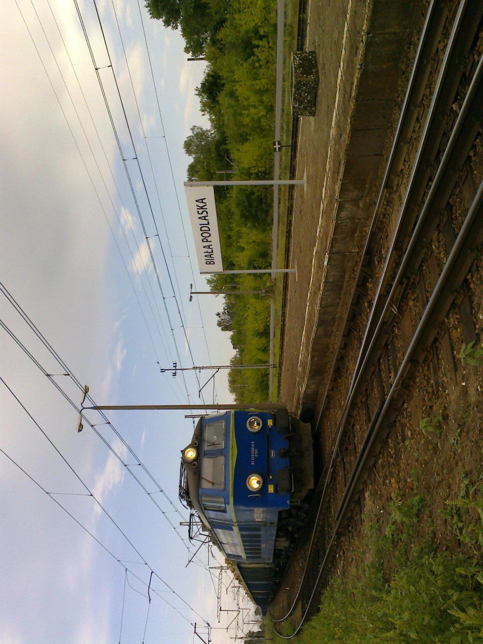 Stacja Biała Podlaska, akurat wjeżdża pociąg towarowy z ET22 na czele. Widok w kierunku Białej Podlaskiej Rozrządowej, Małaszewicz i Terespola.