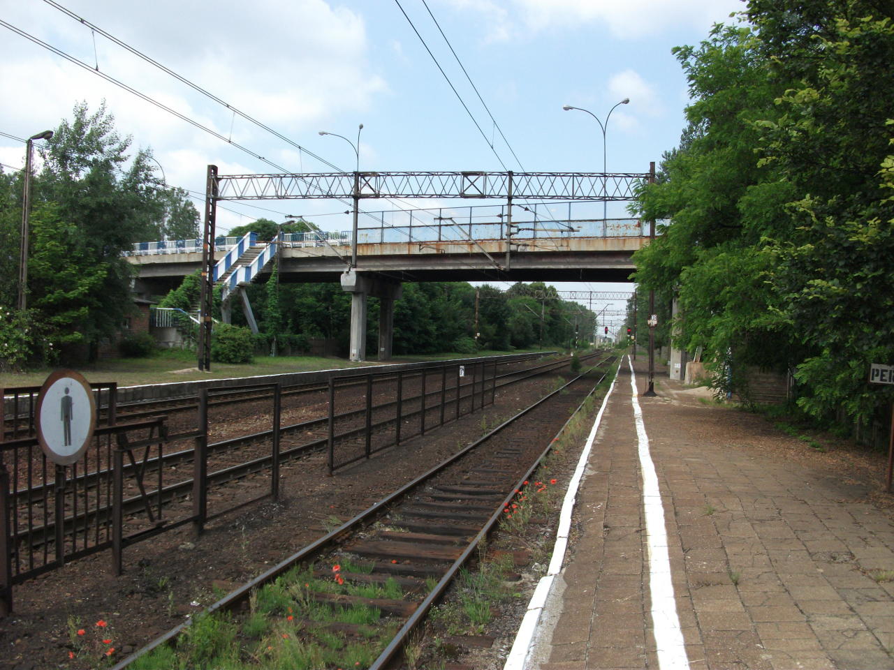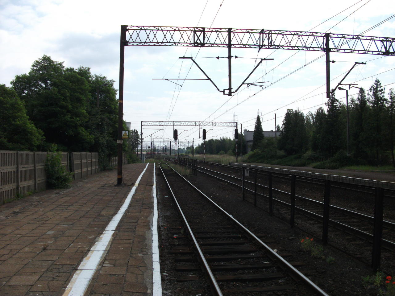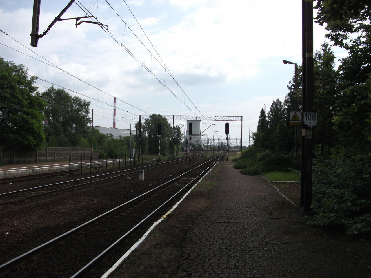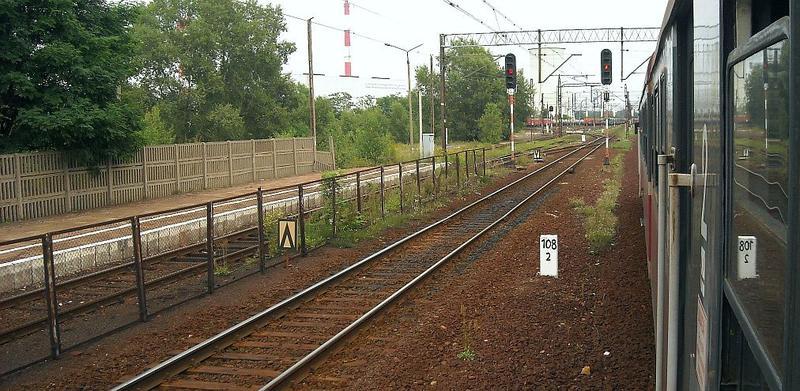 108.2 km. Oś stacji przebiega koło dolnej krawędzi zdjęcia. Z lewej peron 2. Widok z pociągu nr 8646 w kierunku Wrocławia.
