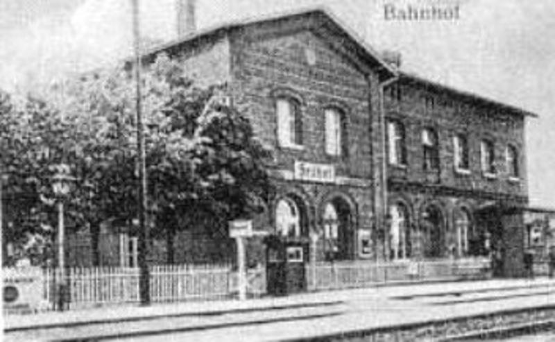 Fröbel Bahnhof. Wycinek z czteropolowej widokówki niemieckiej "Gruss aus Fröbel".