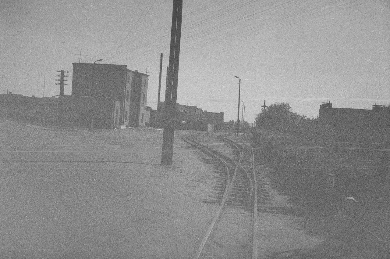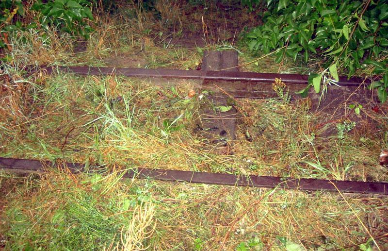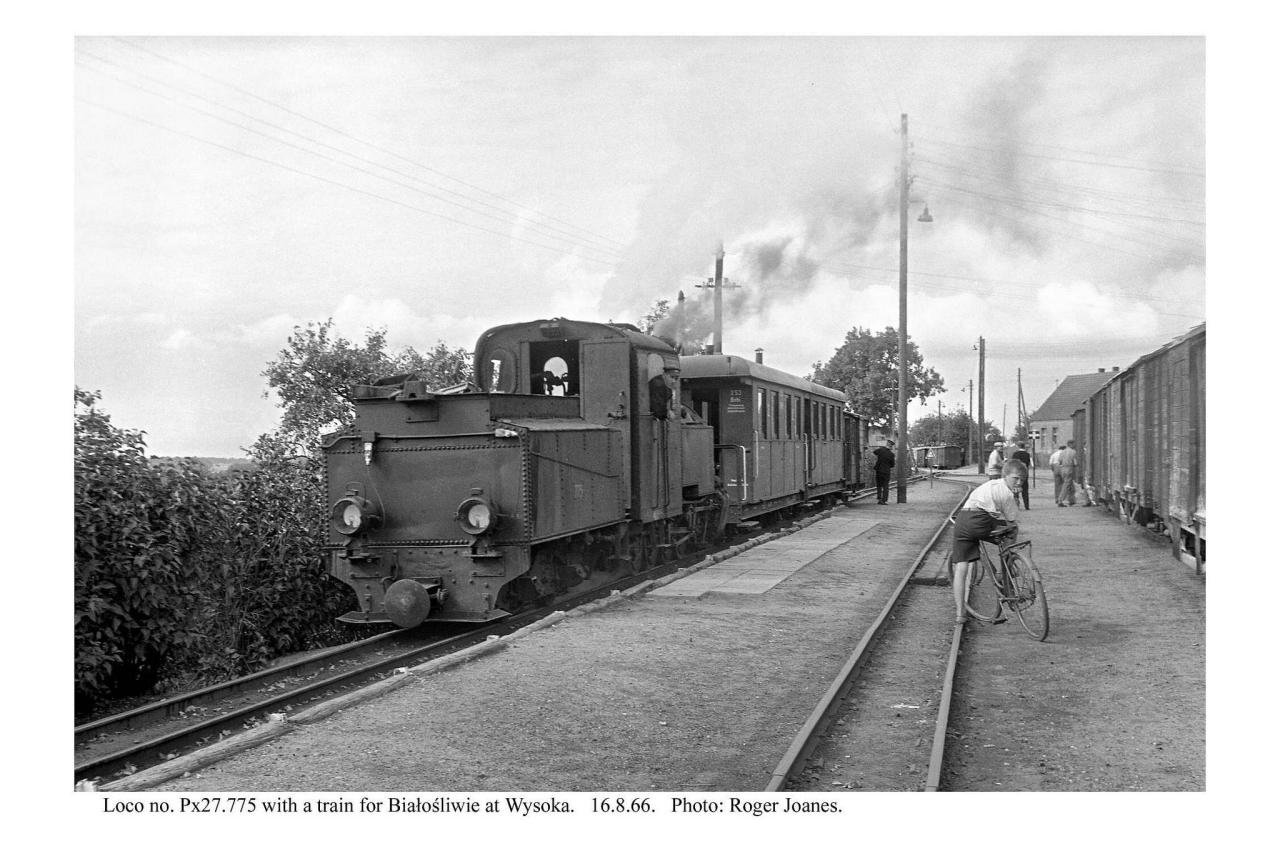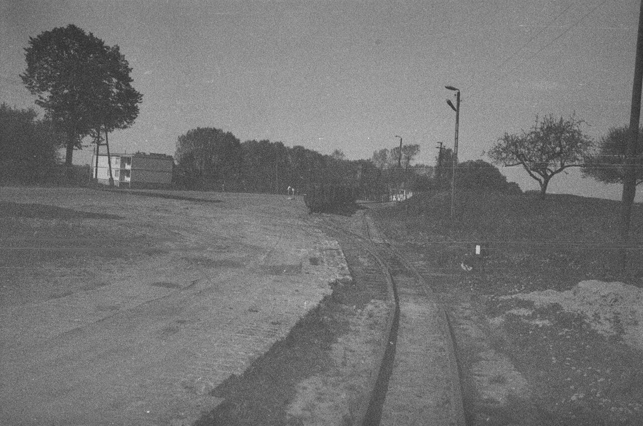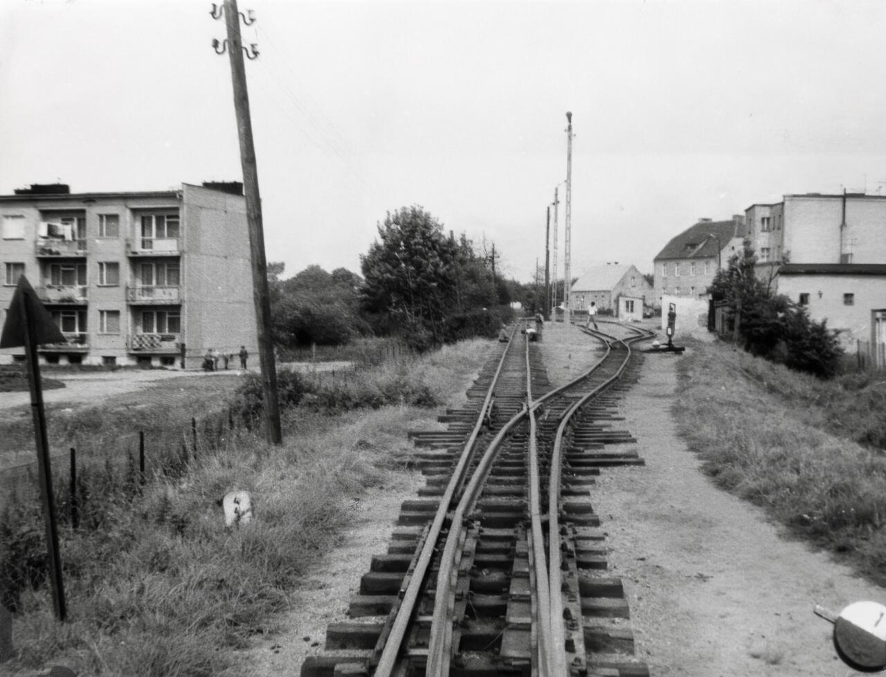 Stacja Wysoka Wąskotorowa - wjazd z kierunku stacji Czajcze, z lewej strony słupek hektometrowy - km 4,4 linii Czajcze - Wysoka Wąskotorowa (na podobnym zdjęciu z 5 maja 1990 roku ten sam słupek wskazywał km 4,5). Widok w kierunku końca linii.