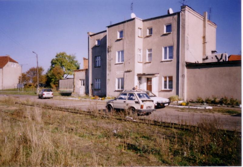 Widok na stację od strony dawnego wyjazdu na Mościska/Kocik Młyn. Z lewej strony dawny budynek dworcowy.