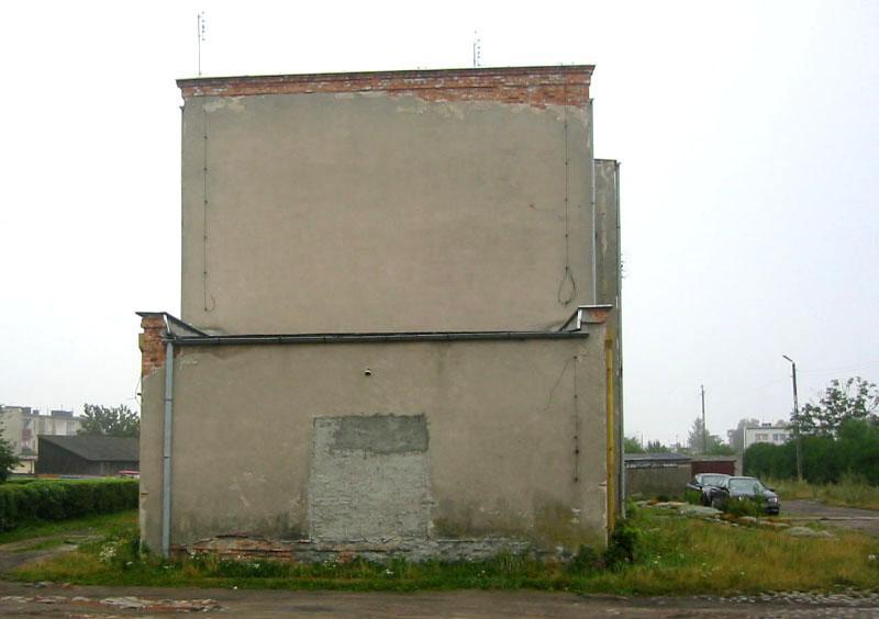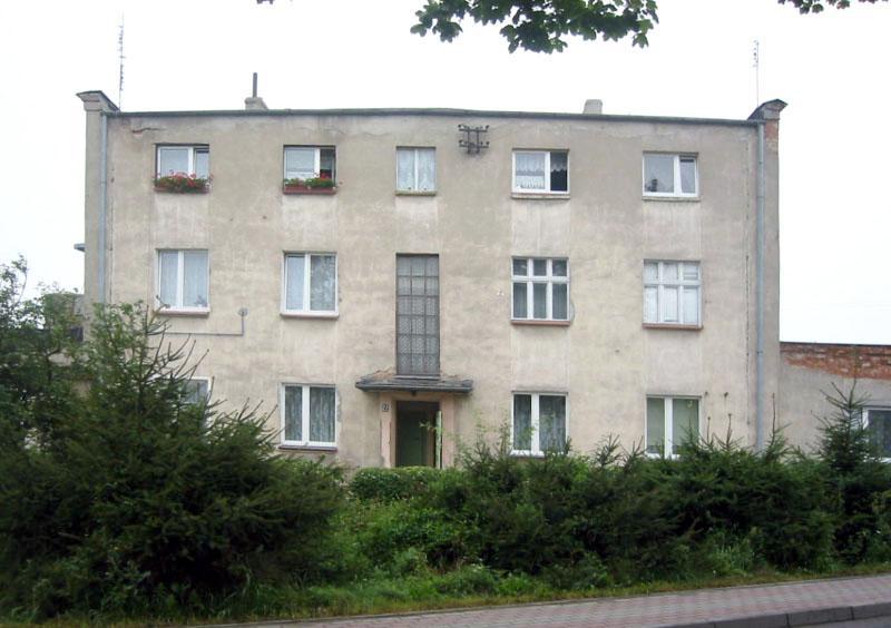 Stacja Wysoka Wąskotorowa. Obecne główne wejście do budynku dworcowego, który pełni funkcję bloku mieszkalnego.