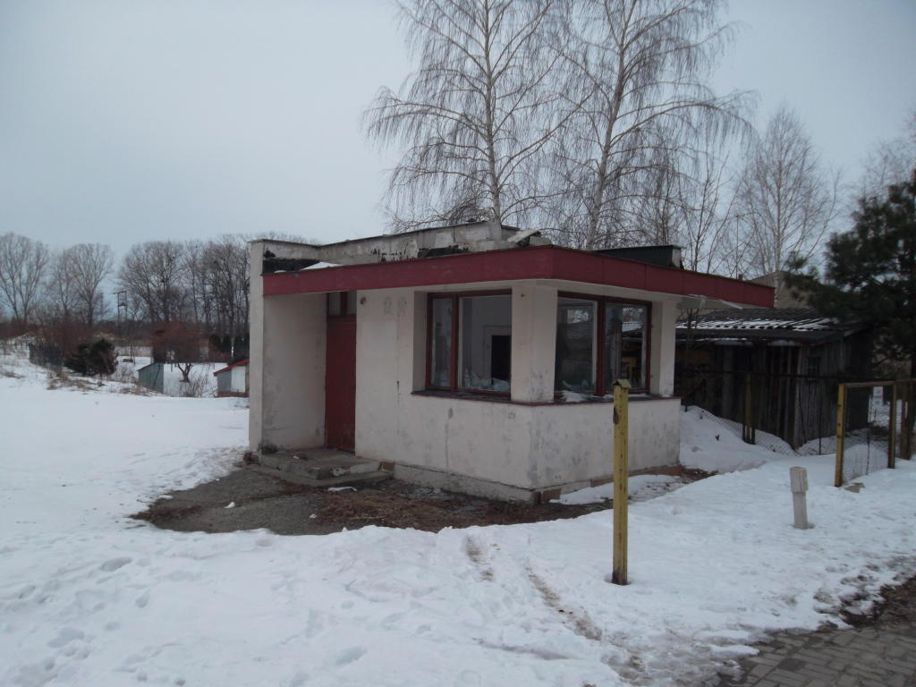 Zdewastowana nastawnia wykonawcza przy ul. Nowej (wyjazd w kierunku pn-wsch).