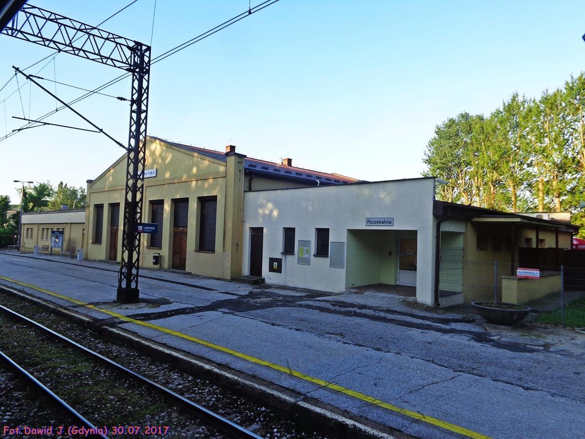 Budynek przystanku widziany z peronu od strony Stalowej Woli Rozwadów.