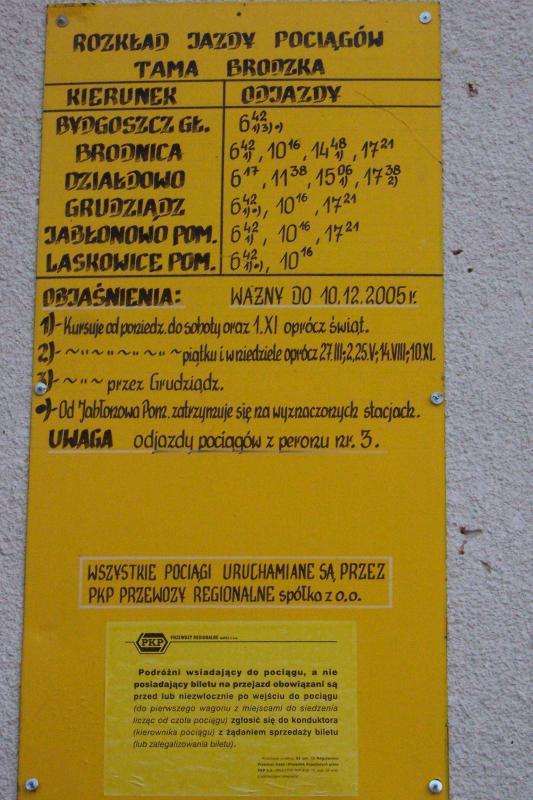 Tama Brodzka, Rozkład jazdy pociągów, stan na rok 2005. .