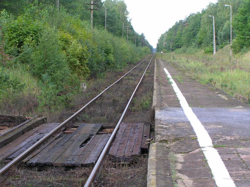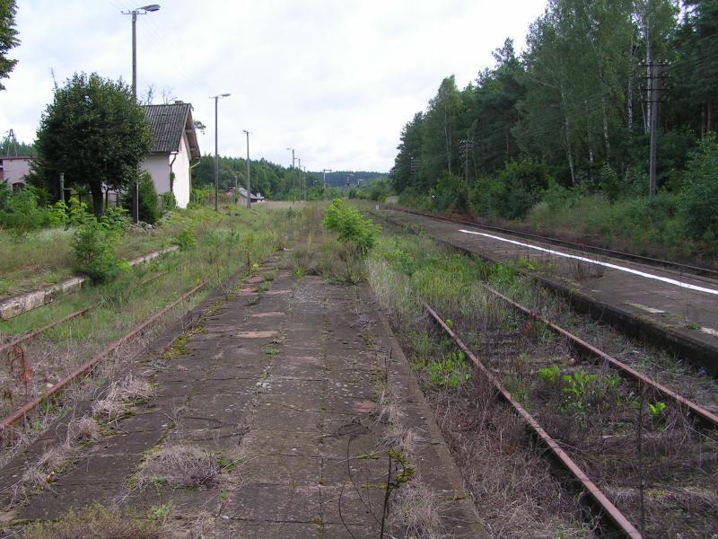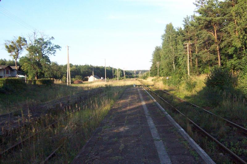 Tama Brodzka - widok na czynny tor w kierunku Działdowa. Z lewej nieczynne tory do Iławy.