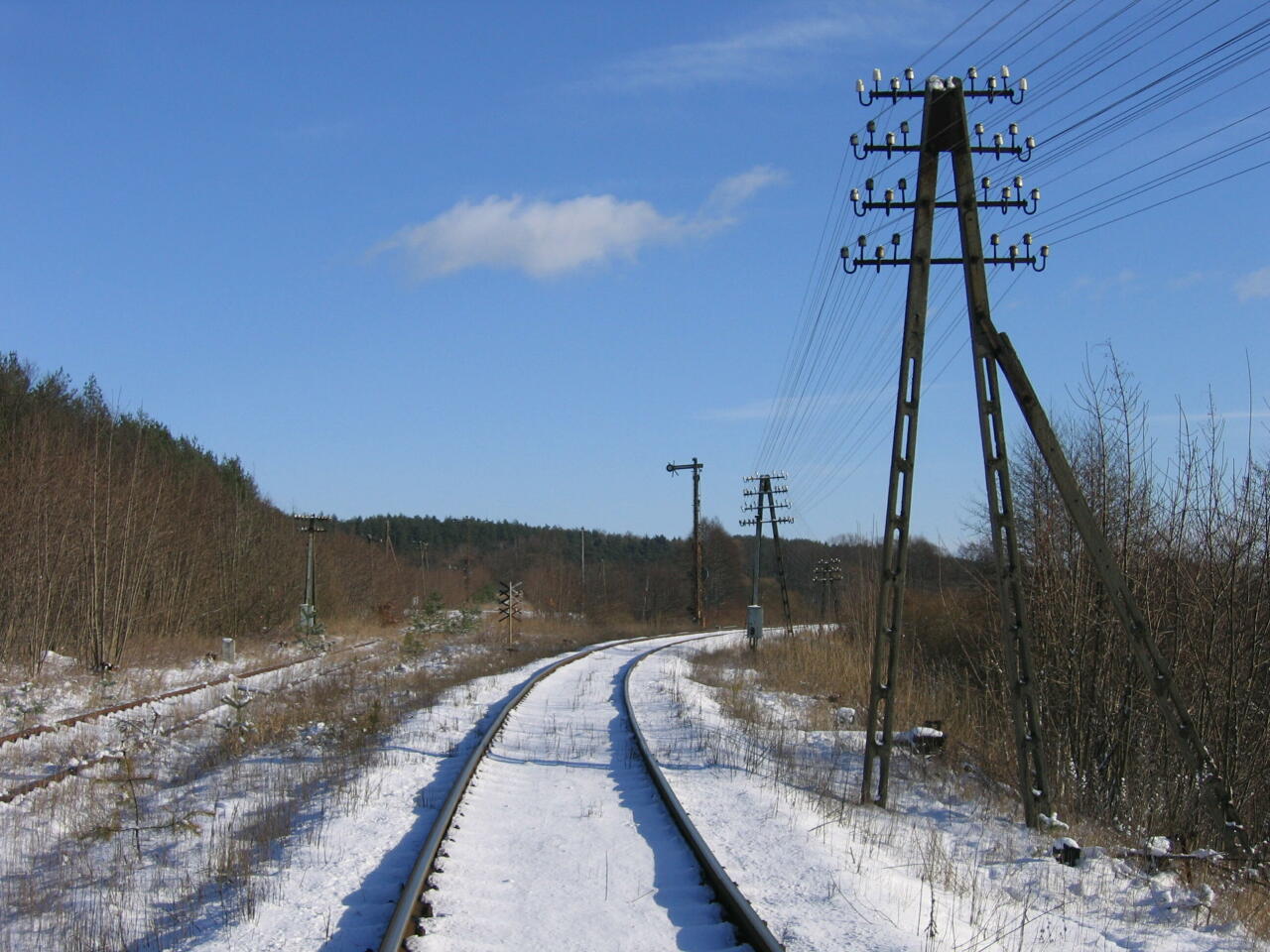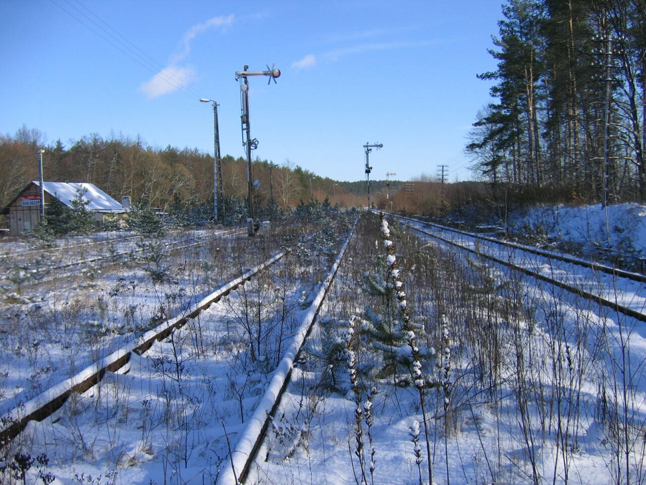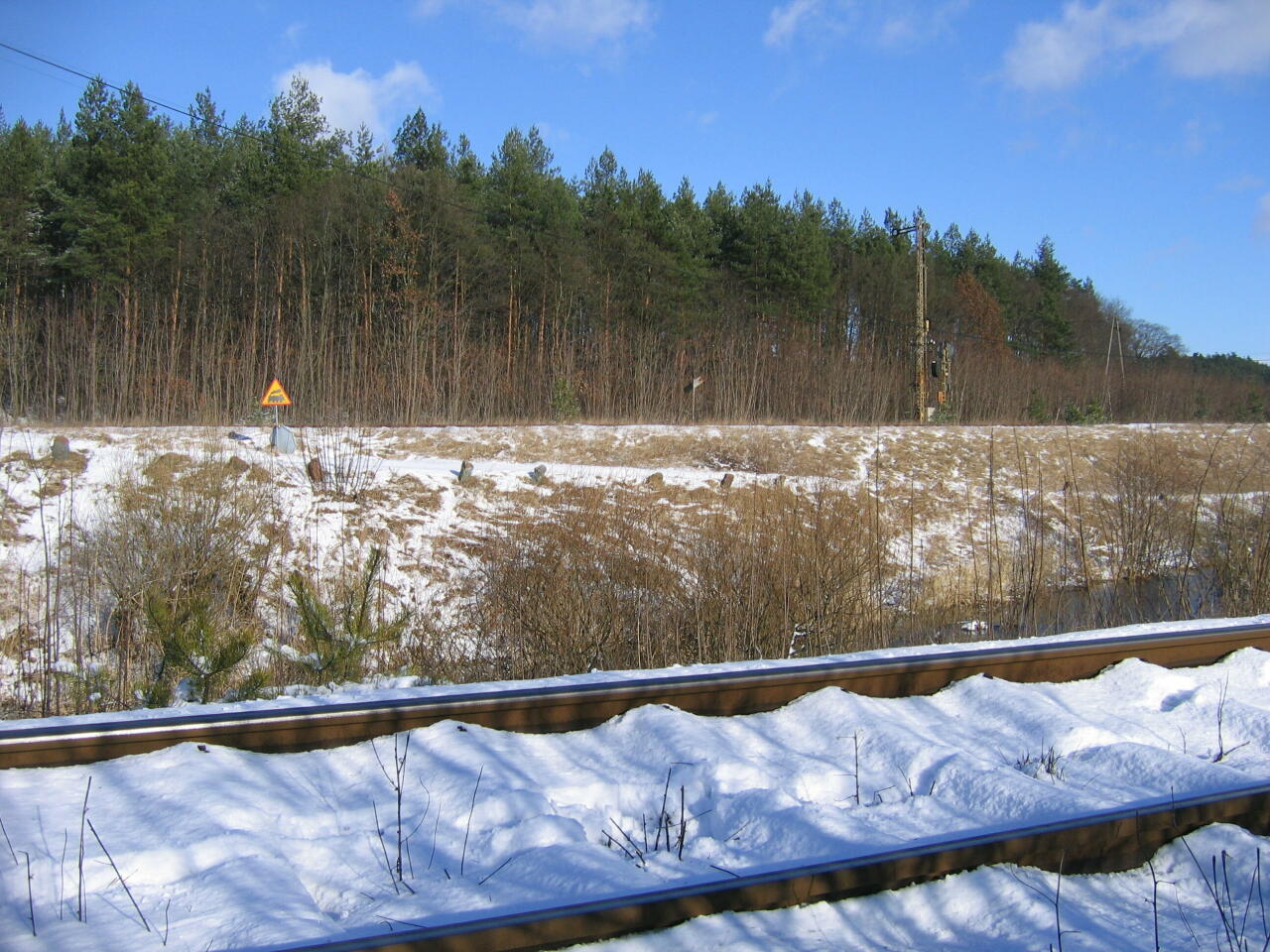 Brak śladów pasażerów na śniegu wskazuje na wykorzystanie stacji… Widok w kierunku zachodnim (Brodnica).