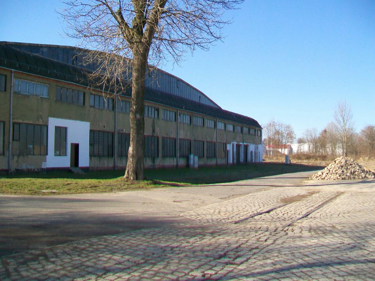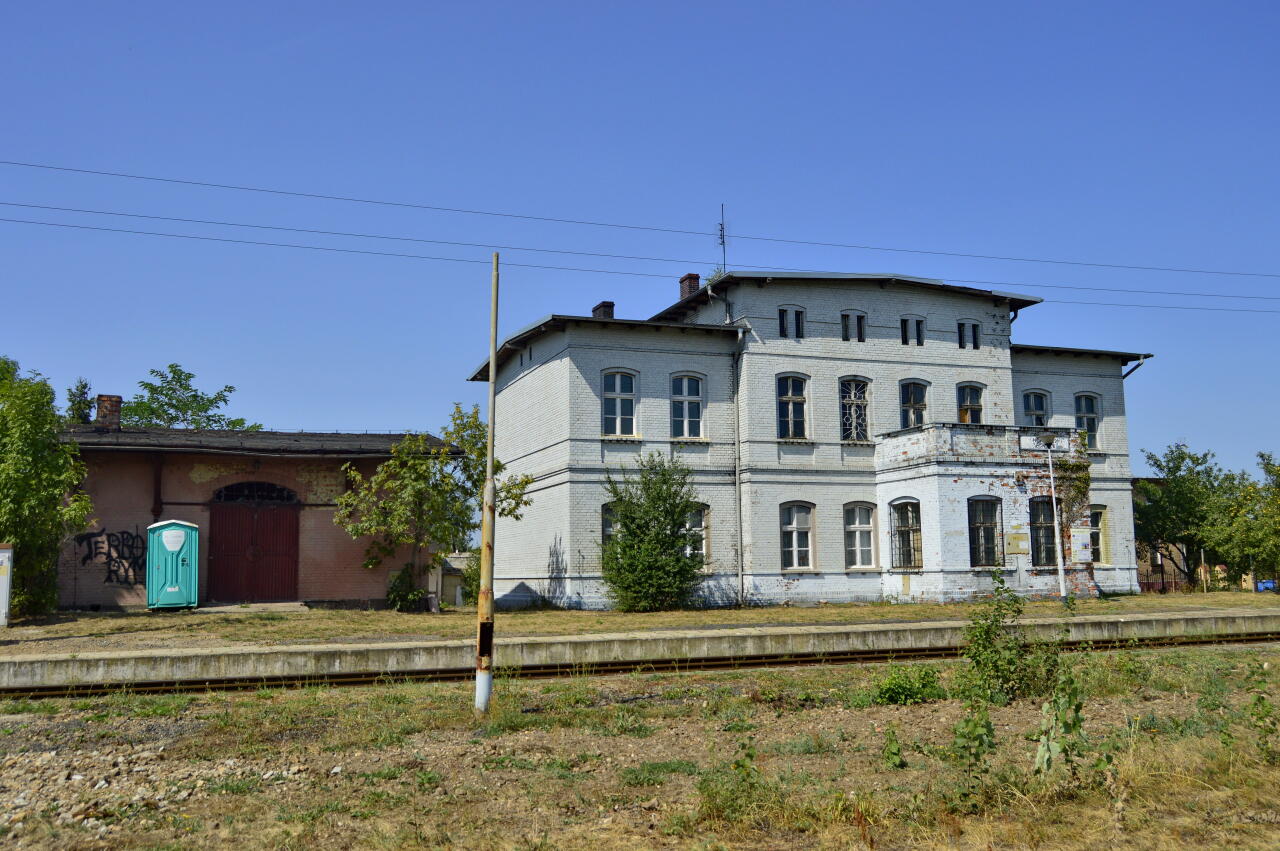 Budynek gospodarczy vis a vis budynku dworca (za plecami). Widok w kierunku zachodnim.